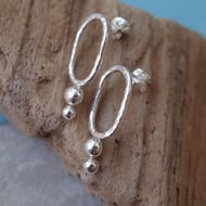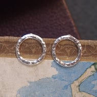 Sterling silver stud earrings with textured pattern punched into the surface of the silver ring.
