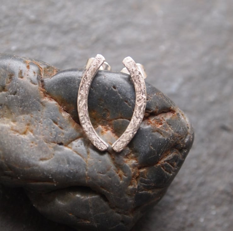ARC stud earrings - a curve of sterling silver has been hammered to add detail and texture then burnished to a bright shine to finish. These are a stylish and understated pair of earrings, great for everyday wear.