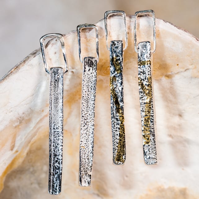 I've made these earrings either in reticulated rippled silver - as in the two shot -