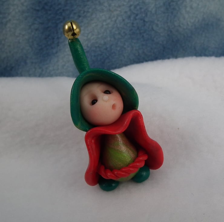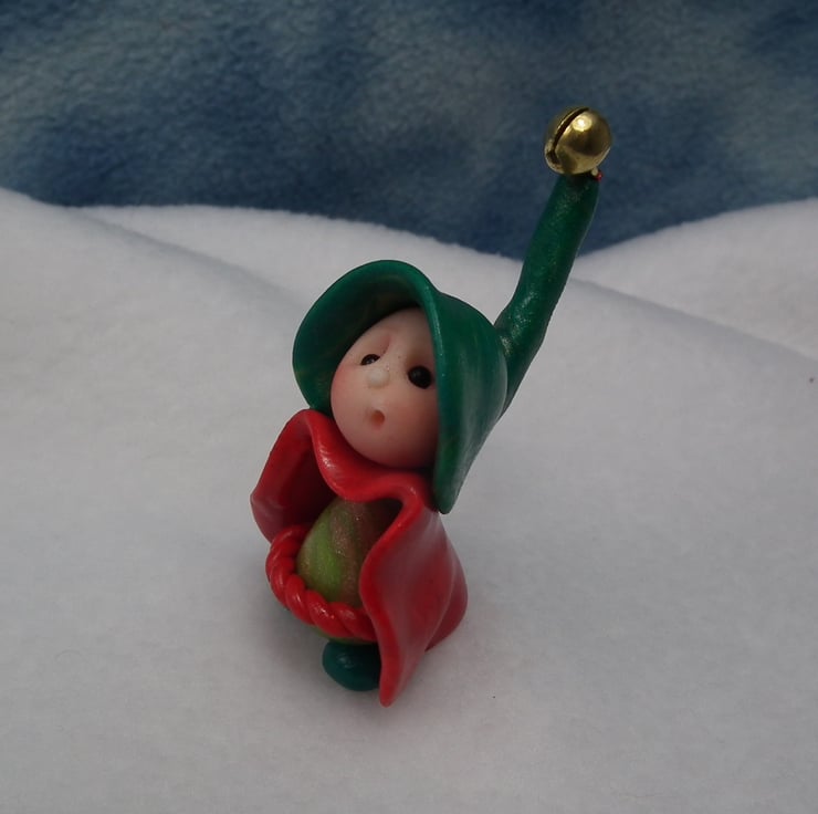 This is a 'one of a kind' creation having been entirely handmade without the use of moulds here at my studio on the Sussex Coast. Modelled with Prosculpt polymers, painted with heat set paints before sealing with lacquer, Nipper has sparkling black onyx eyes and a golden bell. Nipper - Santa's helper is just one and a half inches tall.