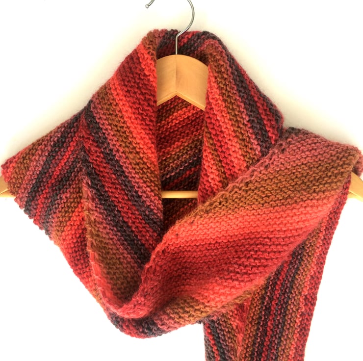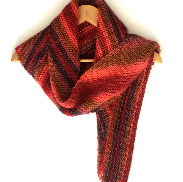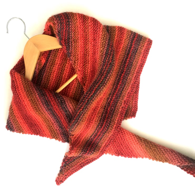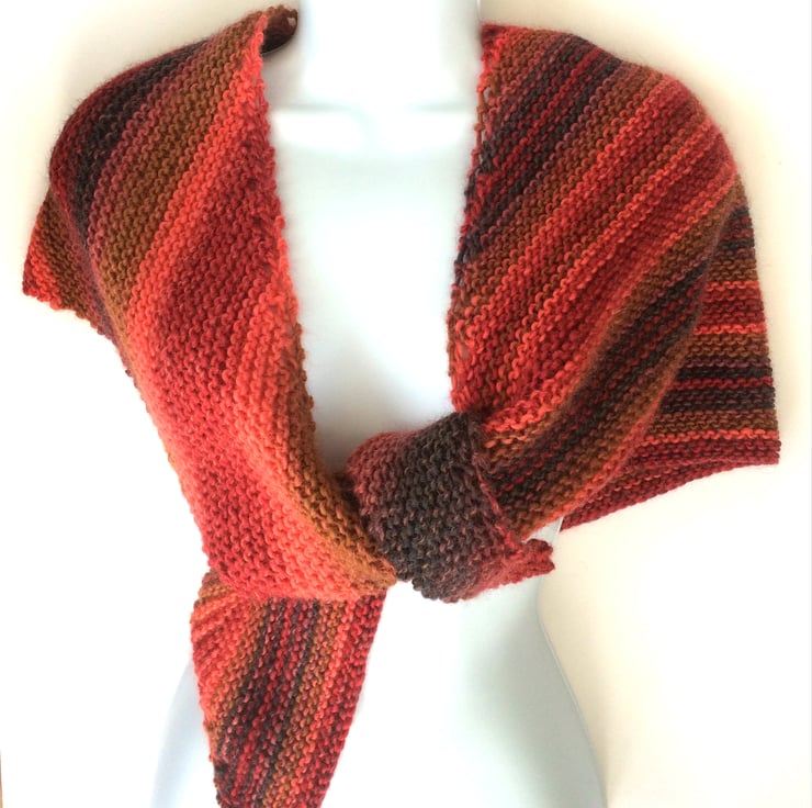 Chunky hand knitted red striped shawl. Ultra feminine winter accessory knit in 100% wool. Beautiful women's wrap, would make an ideal Christmas gift for friends and family.