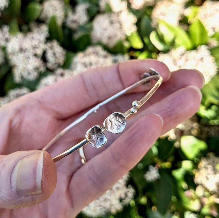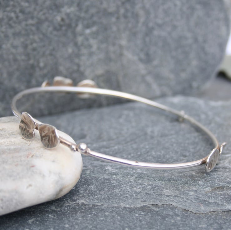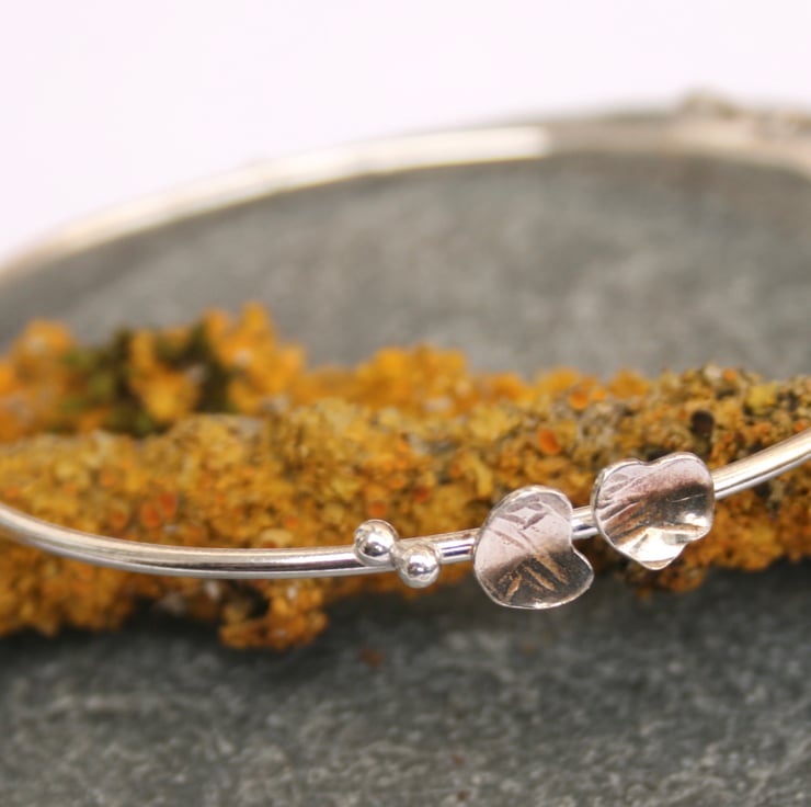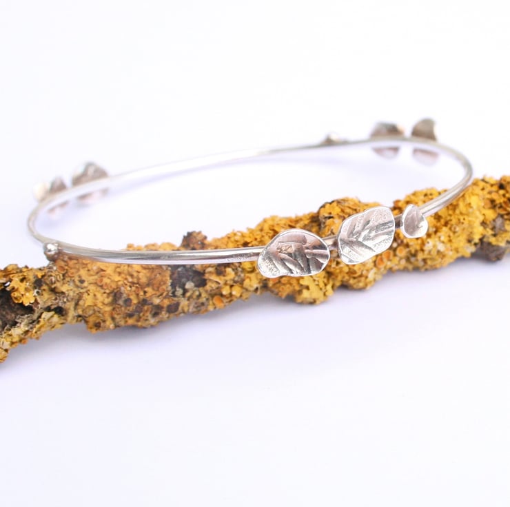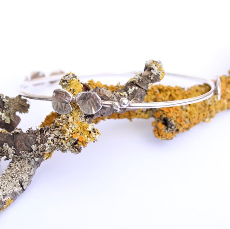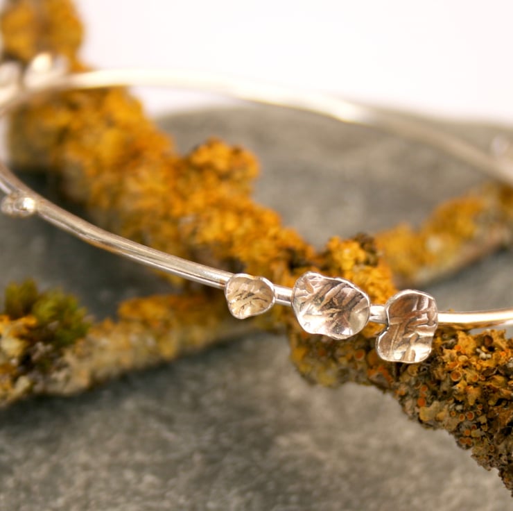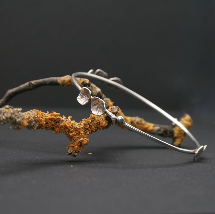 This beautiful sterling silver bangle is inspired by the lovely shapes of lichen that I see growing on branches in gorgeous clusters. Other pieces of jewellery are also available in this range.