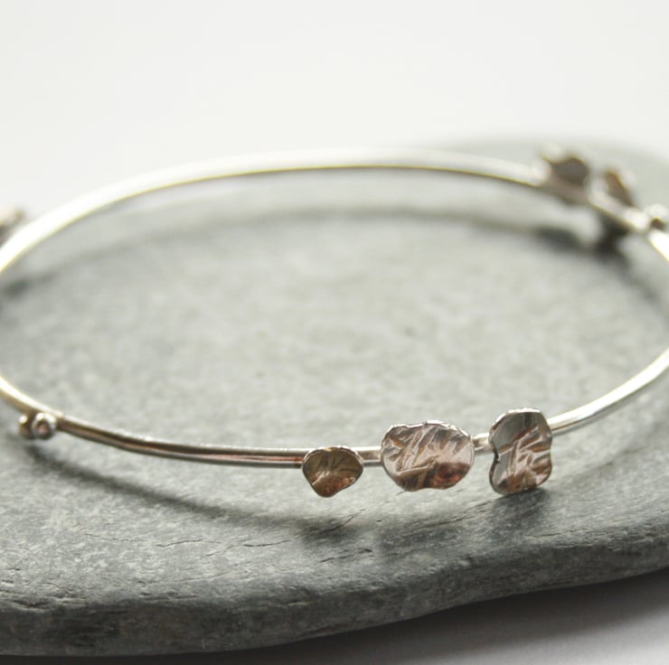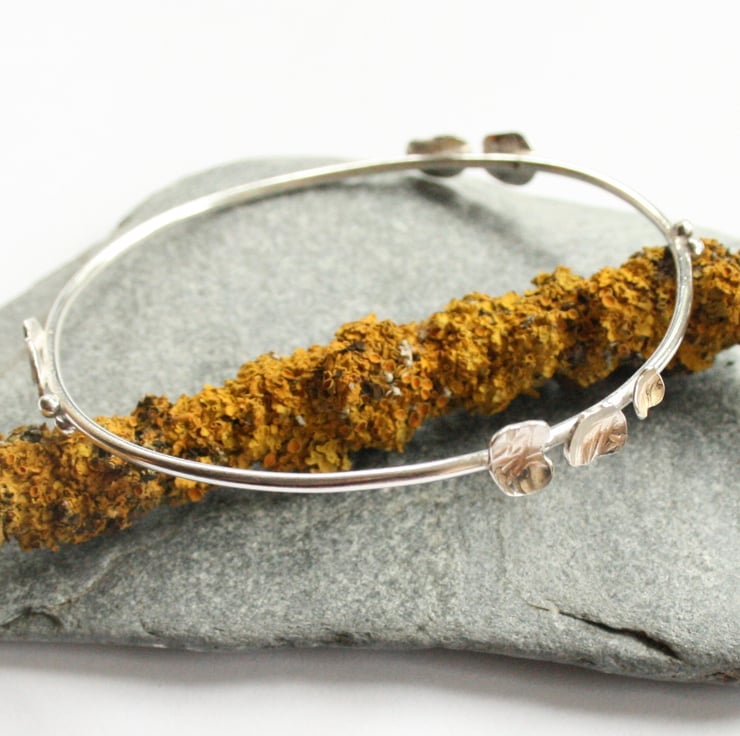 Sterling silver bangle inspired by lichen, solid silver bangle, nature jewellery