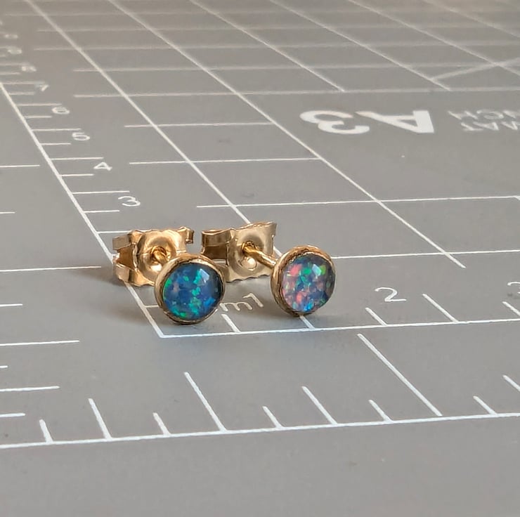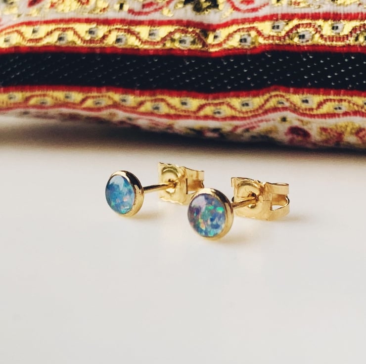 little 4 mm 9carat gold stud earrings set with beautiful round opal triplet gemstones.