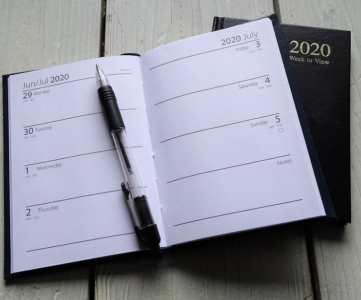The diary has UK holidays and is week-to-view. it is hardback, A6 size. Dimensions of the diary without the cover are 10.5cm (4.24") wide X 15cm (6") high X 1cm (3/8") deep.