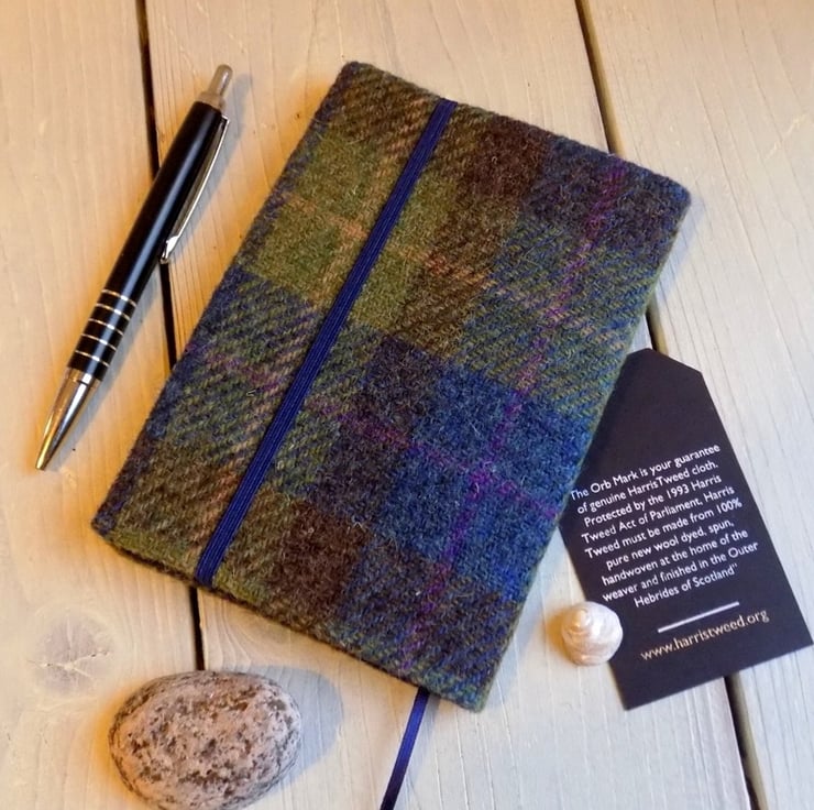 The front of the diary carries the iconic Harris Tweed label which authenticates the fabric as pure new wool, hand woven in the Outer Hebrides of Scotland. Some people prefer not to have the Harris Tweed label attached, or request for it to be positioned on the back cover - just send me a message when you place your order.