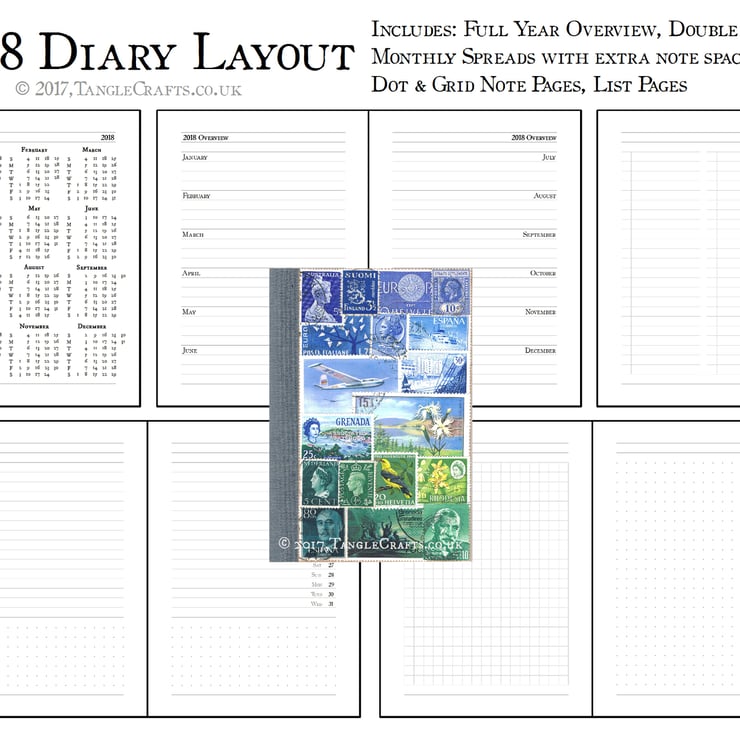 I designed this 2018 diary for easy, at-a-glance reference of important dates, while also providing lots of extra space for even more notes & lists - not to mention an utterly unique cover filled with so many stories of its own..