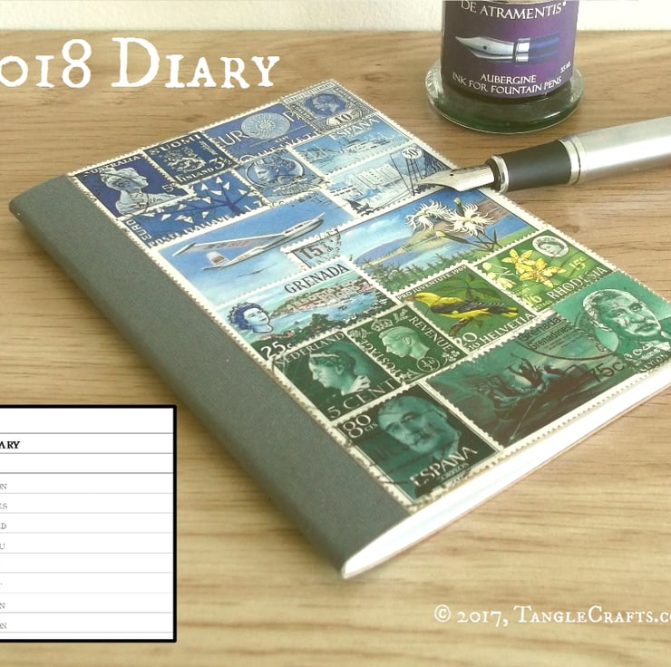 2018 Diary - Upcycled A6 Month Planner with Postage Stamp Art Cover