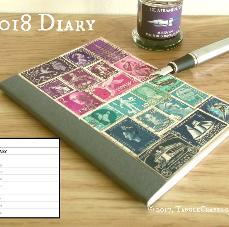 2018 Postage Stamp Diary - Upcycled A6 Month Planner