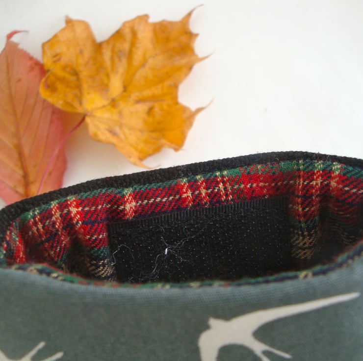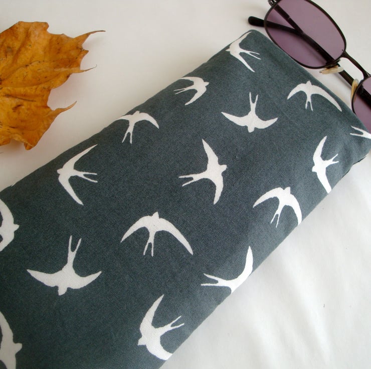Made in two lovely fabrics , front is a printed swallows cotton fabric , & the back is made in a black canvas fabric