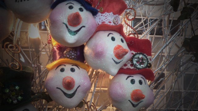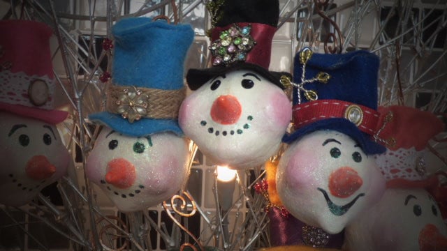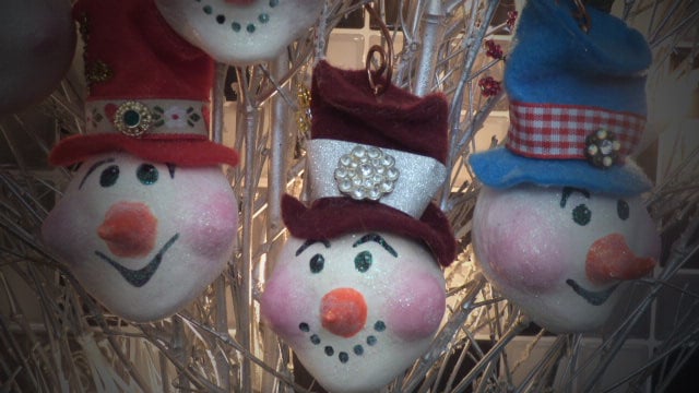 This listing is for ONE individual hand made Snowman Head Paper Clay Bauble.