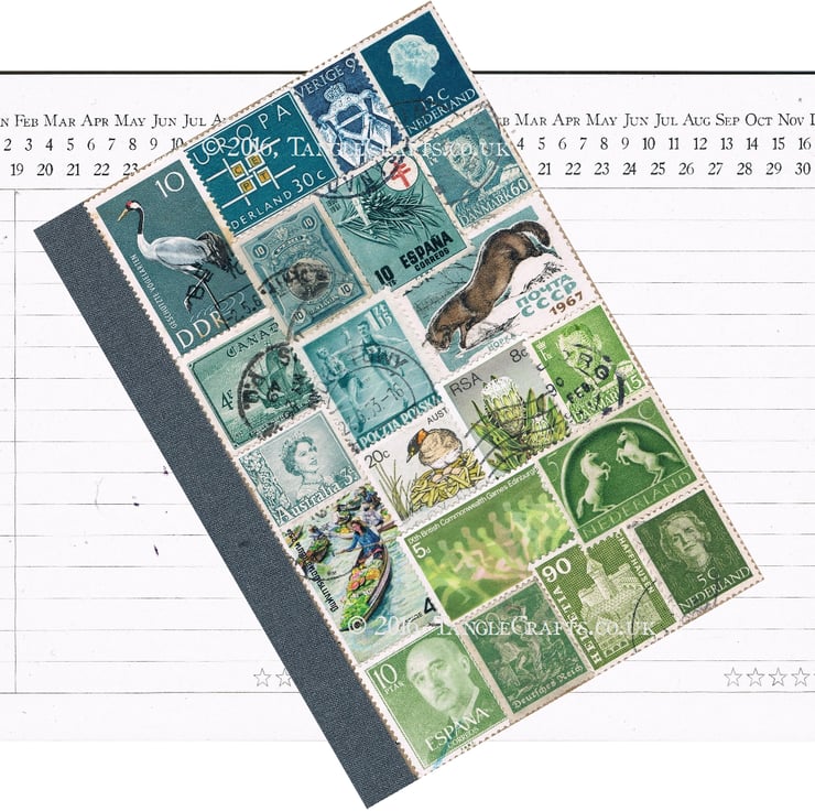 Some time ago I discovered that my perfect artistic medium is actually vintage postage stamps. Inspired by their history, character, and faded colours, this eclectic 'paintbox' has become something of an obsession. Every nuanced shade can be found if I root around for long enough, and every upcycled artwork 'rescues' another small collection of stamps from landfill (a lot of the stamps I use are slightly torn or creased, or just too common to be of interest to collectors).
