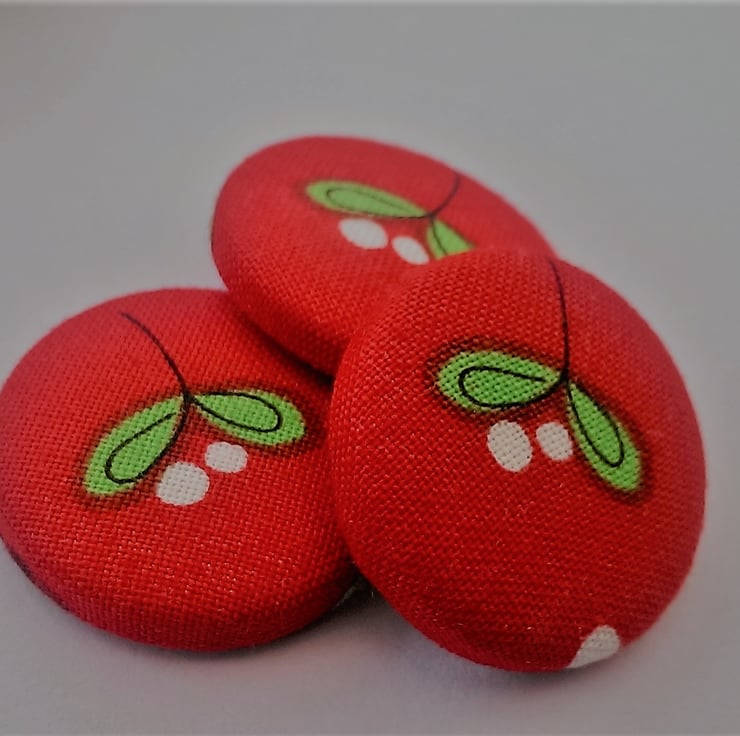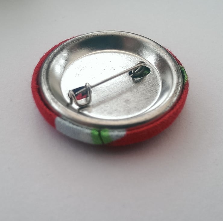 Christmas mistletoe fabric covered button badge. One inch in diameter. Perfect for on bags, coats, party bags, hats, stocking fillers....so many possibilities!