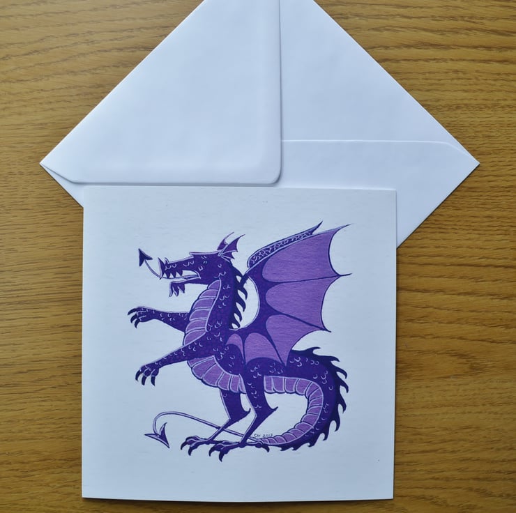 Purple Dragon greetings card, printed from my original painting, with a good quality white envelope and cellophane sleeve.