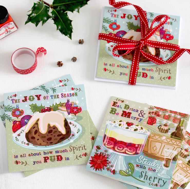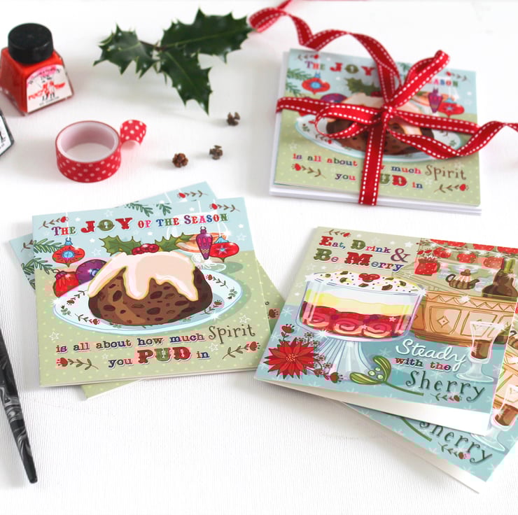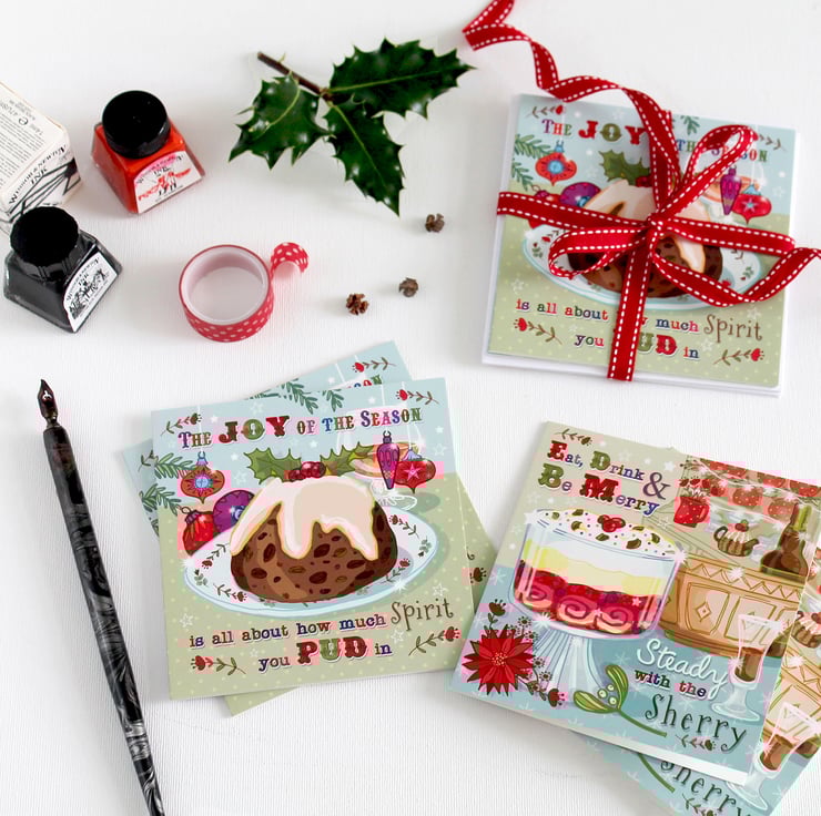 Pack of 6 Christmas cards/notecards in my original designs. 3 of each of the following 2 designs: