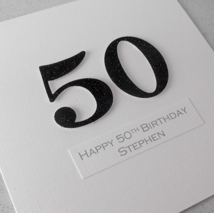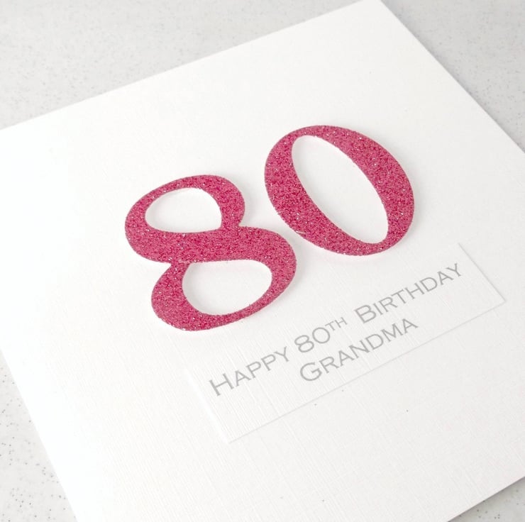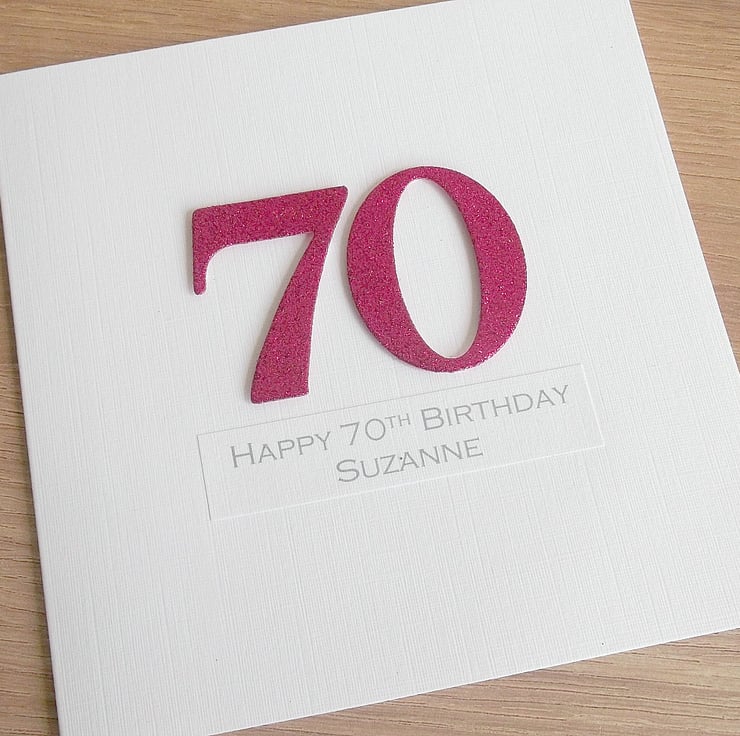 The printed message can be personalised to any message you require. The large sparkly numbers can be supplied in a range of colours The card shown uses turquoise glitter card. Please choose the colour you would like as you order.