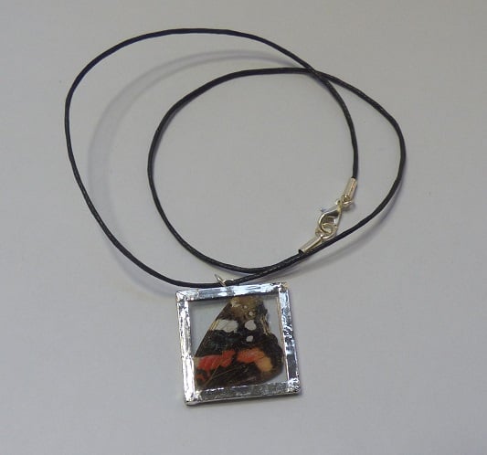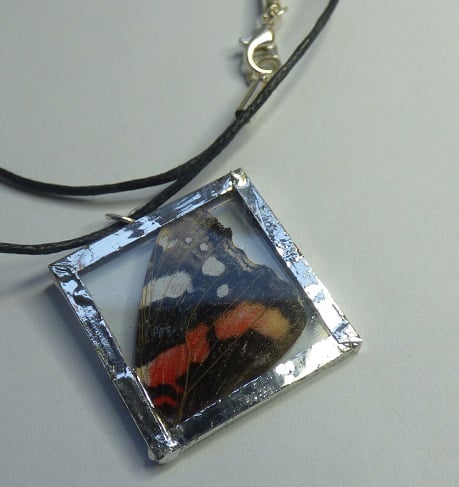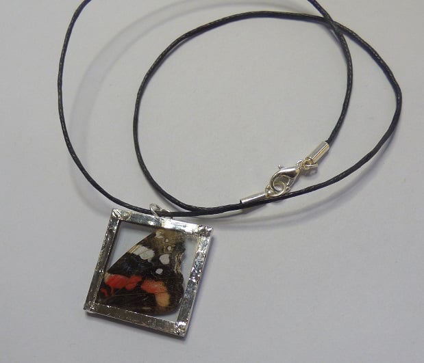 I ethically sourced a Red Admiral butterfly and made this pendant from one of its wings.