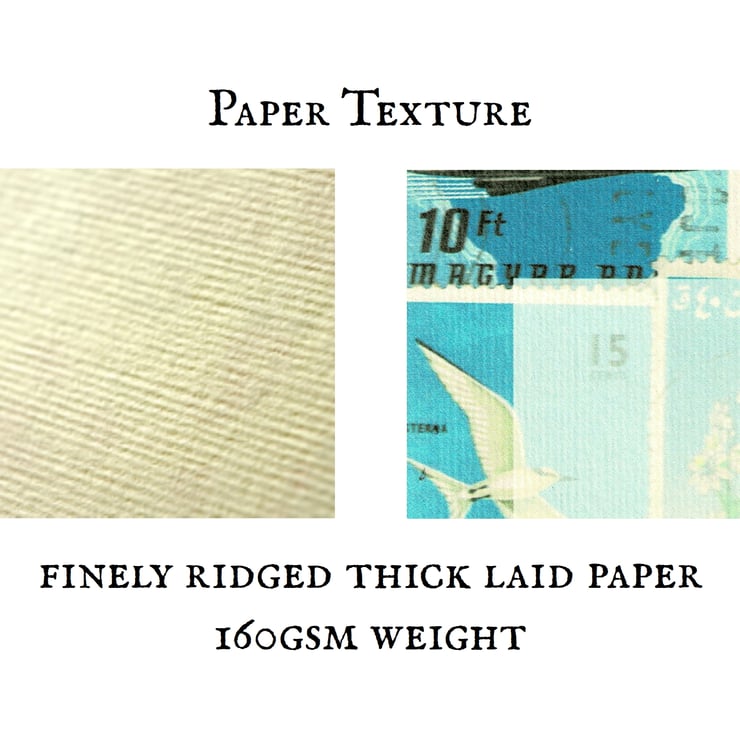 The sheets of writing paper are a luxurious, laid heavy weight (160gsm), thick & creamy 'acquerello' with a finely ridged but fountain pen friendly texture - beautiful to write on! Design is printed on one side only of A5 sheets (14.8 x 21cm).