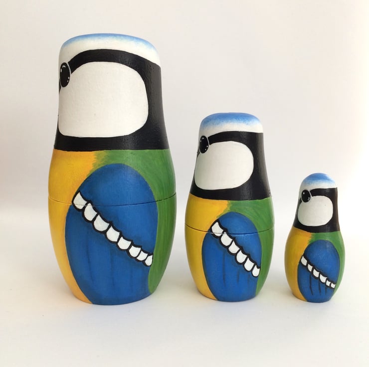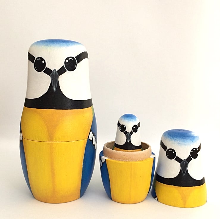 Each Blue tit fits inside the other Russian doll style, the smallest does not open.