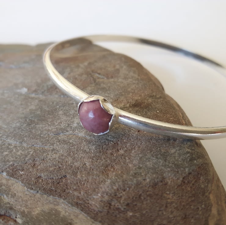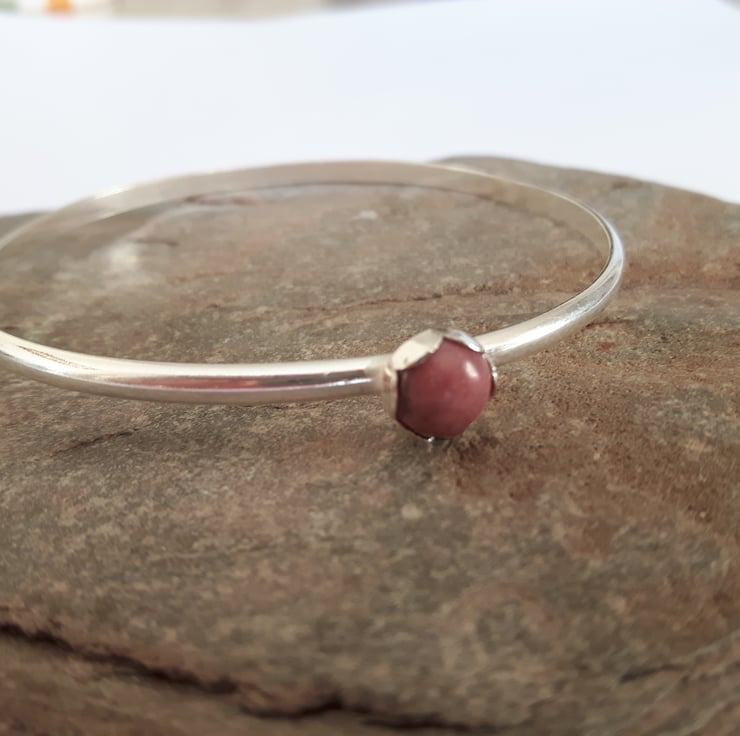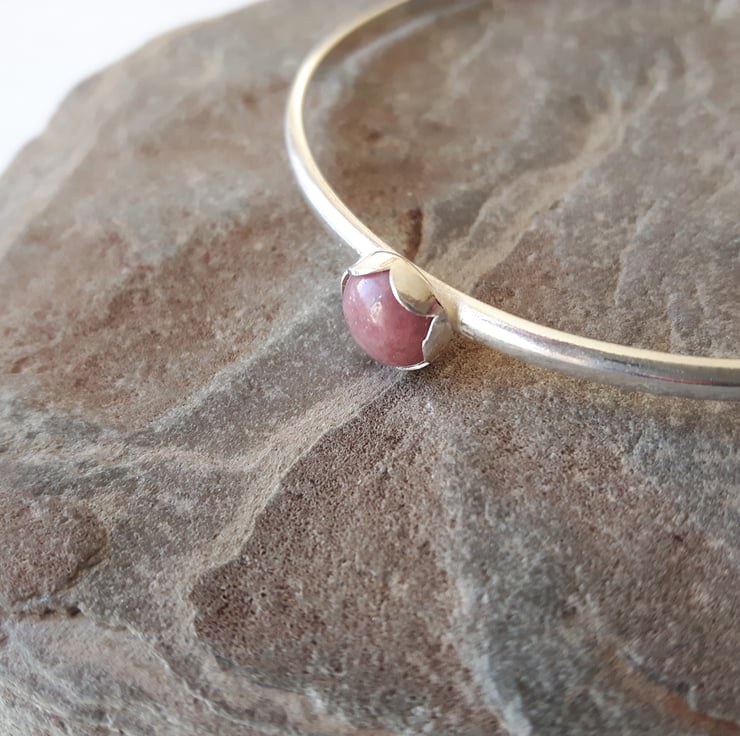 Sterling silver bangle with pink Rhodonite Gemstone