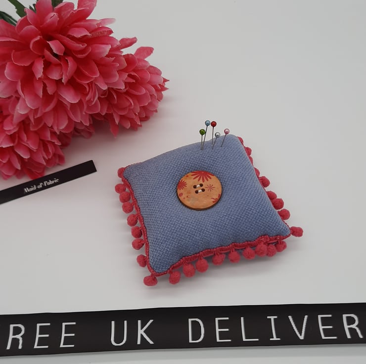 It has been filled with synthetic stuffing and has a sheet of buckram inside so the pins won't go all the way through.