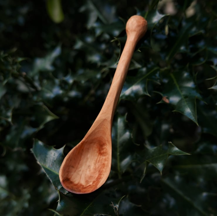 A small scoop handcarved from Welsh apple wood. About the right size for herbs or spices - five inches long.
