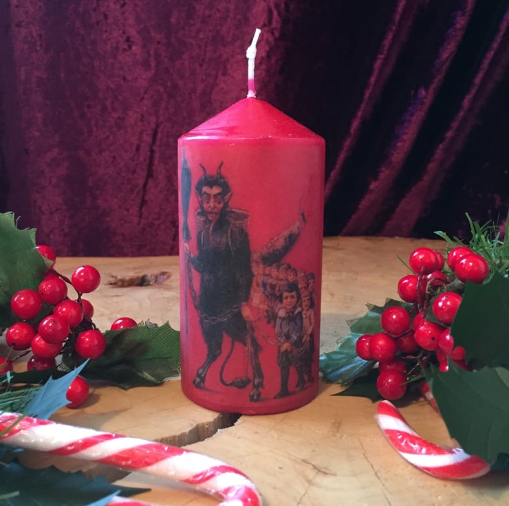 The Christmas Devil inspires these festive candles, which is a German folklore Krampus He was created as a counterpart to kindly St. Nicholas, who rewarded children with sweets. Krampus, in contrast, would swat "wicked" children and take them away to his lair if the children misbehaved