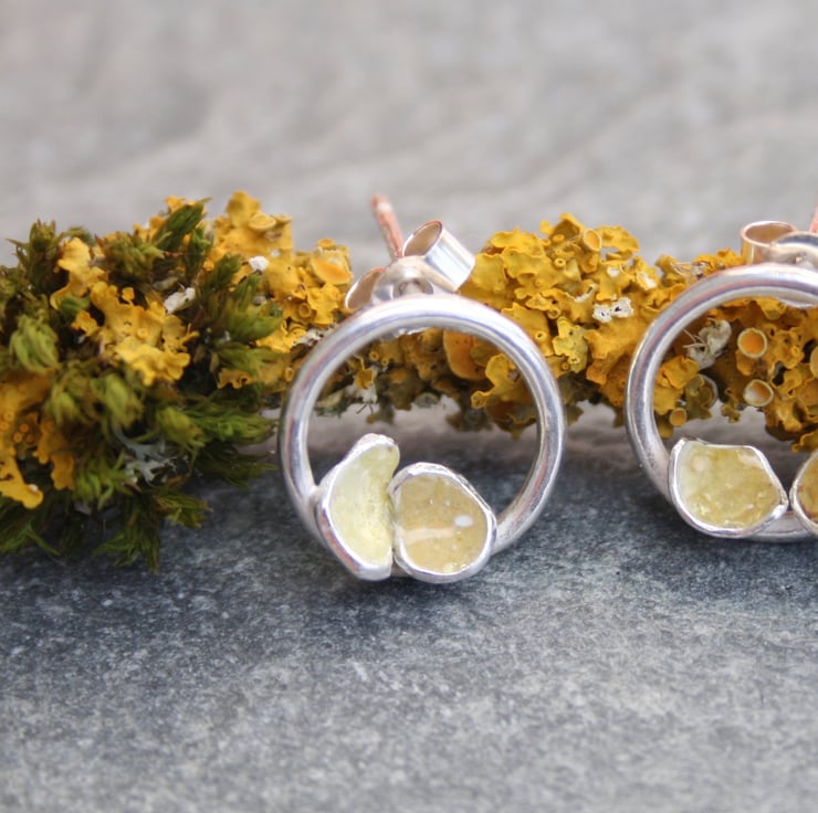 These sterling silver stud earrings are inspired by lichen that I see growing on branches while walking in the woods of Scotland.