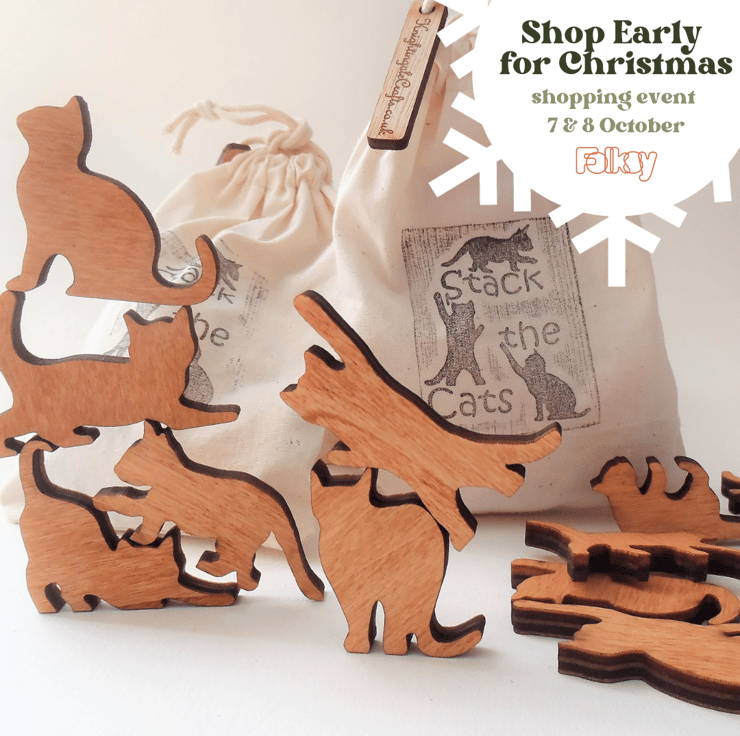 Stack the Cats! A set of 12 miniatures wodoen cats, play with them, paint them, name them, hide them...... an interactive cat display!