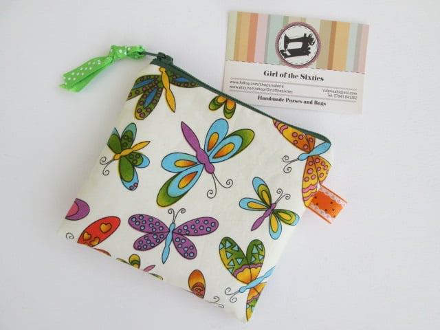 Pretty little butterflies printed fabric coin purse, perfect for your coins, notes and cards. Zip colour may vary but will match beautifully
