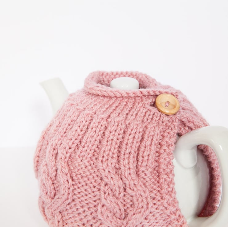 This listing is for a ready to ship, knitted Tea Cosy in Vintage Pink.