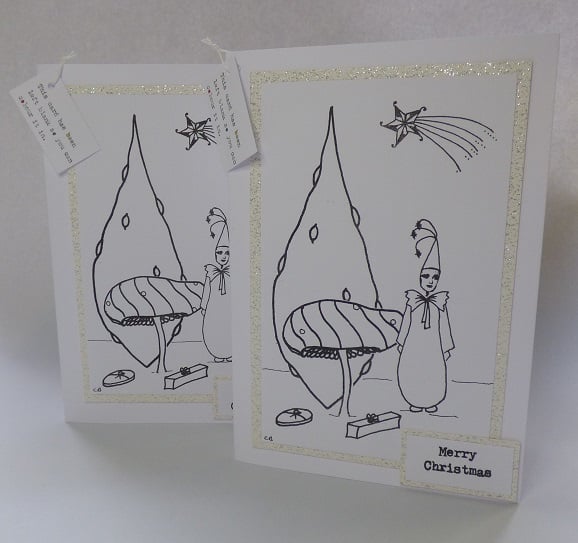 I have mounted these images on a sparkly card background and added them to a 5x7 white card blank.
