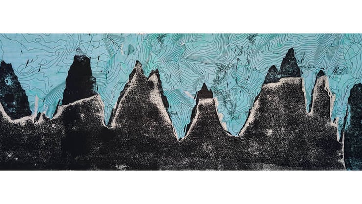 Olivia Bliss is an artist currently based in Sheffield. Olivia studied BA (Hons) in Painting and Printmaking at the Glasgow School of Art, where she won the 2009 Glasgow Print Studio Prize. Primarily interested in our personal connections with landscape, here Olivia Bliss uses contour lines of maps and bold linocut printing to create an original mountain print.