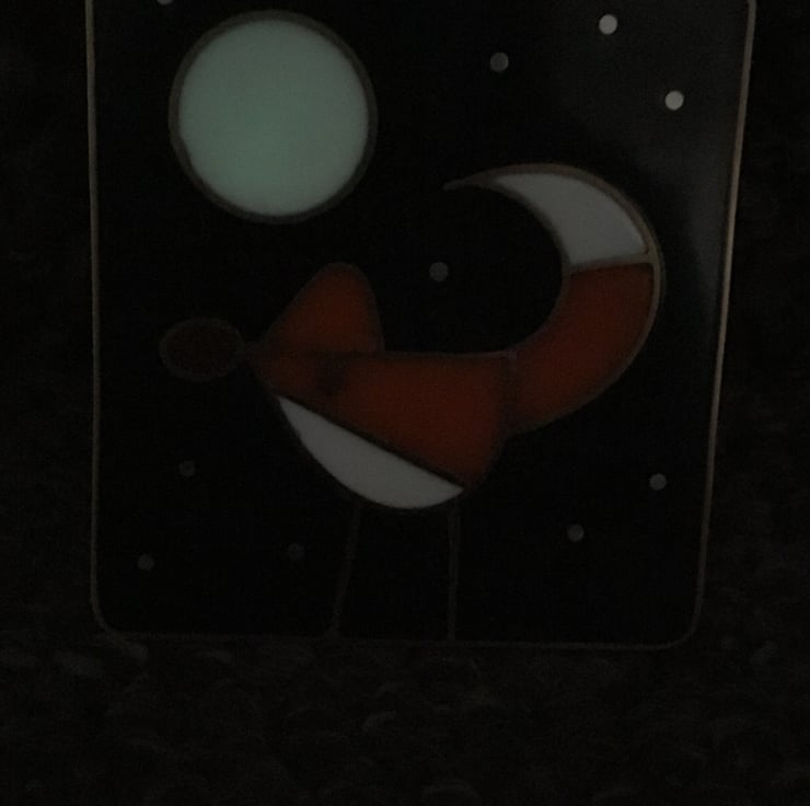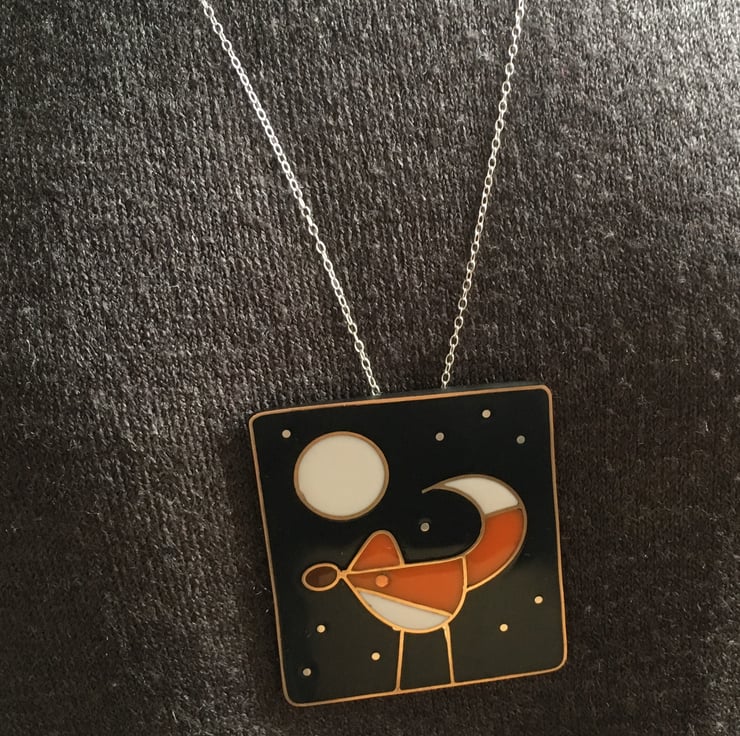 This stunning pendant features a fox in the moonlight. including sterling silver 'stars' and a glow in the dark moon.