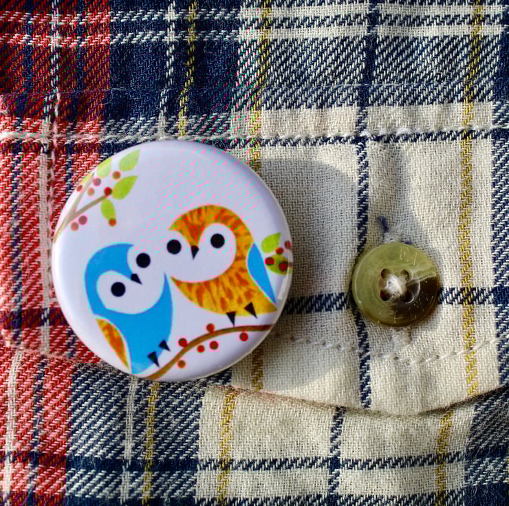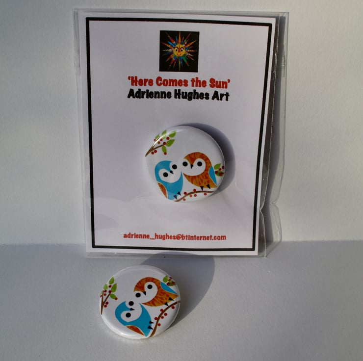My popular 'Little owls' screenprint has been reproduced on a 32mm badge which has been professionally manufactured.