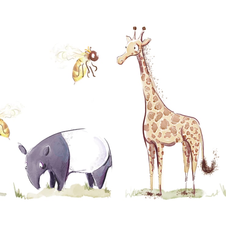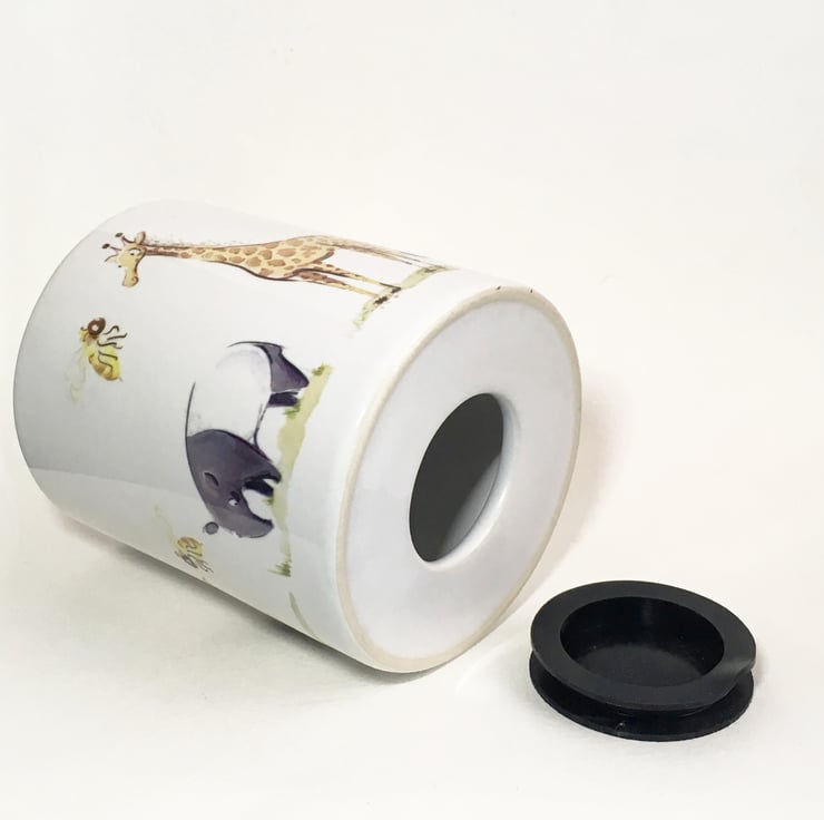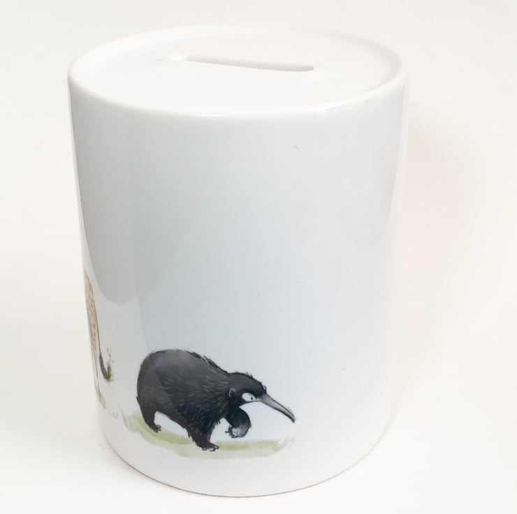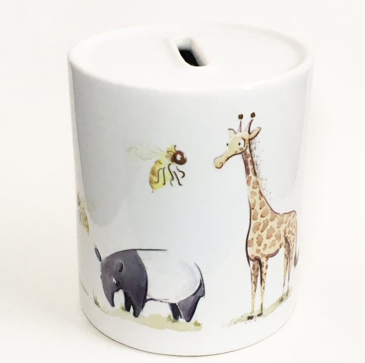 Ceramic money box featuring a Penguin, Tapir, Giraffe, Echidna and some Bee's.