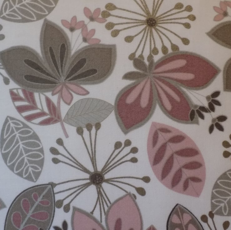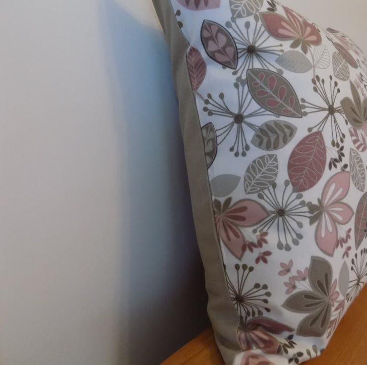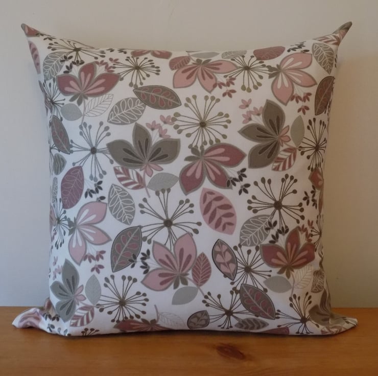 This beautiful cushion cover is made from Maywood Studio’s ‘Flower bed’ fabric, from its ‘Neutral Ground’ range. This contemporary fabric features an abstract floral design in taupe and blush pink on a soft white background. It is a lovely quality medium weight 100% cotton fabric with a slightly sheen finish.