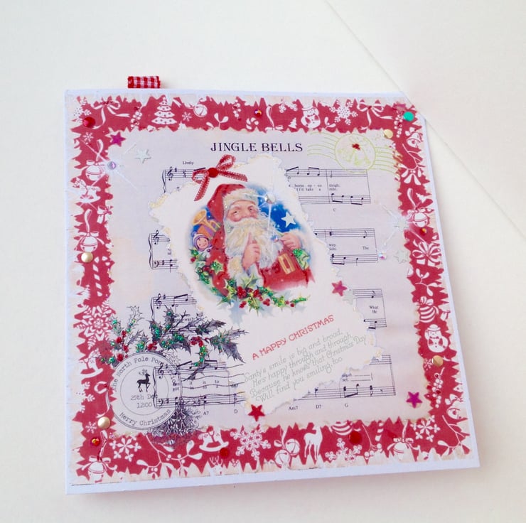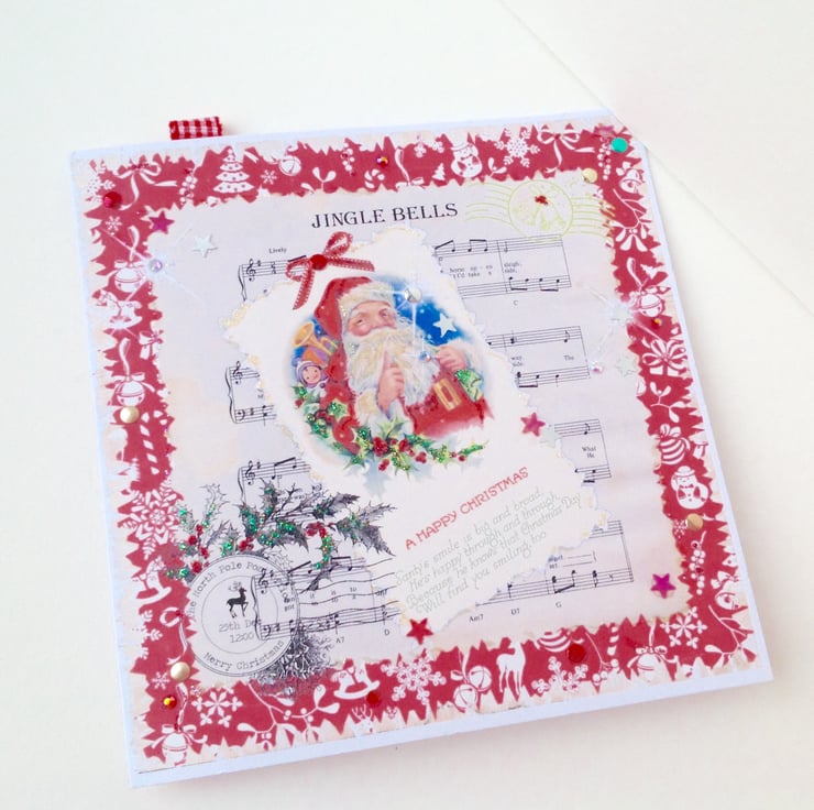 The listing is for a PK of five Xmas cards, in a vintage Santa Design featuring a festive poem
