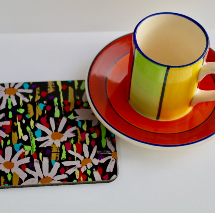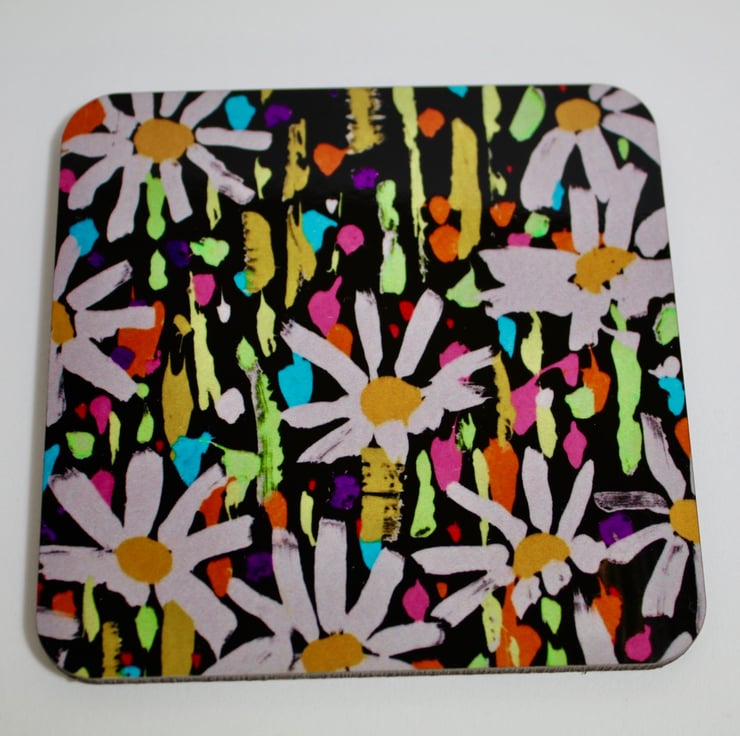 This colourful design is a reproduction of a mono print that I produced on a small silk screen in my home studio. It's a celebration of gorgeous daisies.