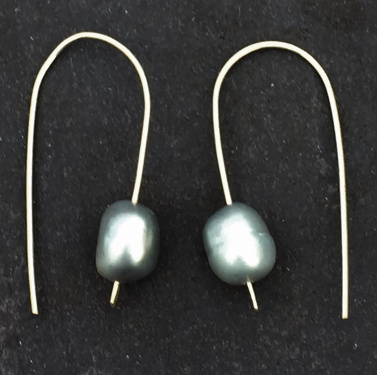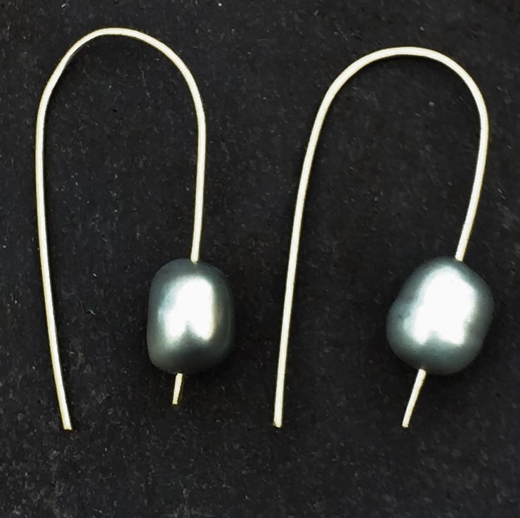 These beautiful earrings are made from large 8-9 mm dove grey fresh water pearls on hand made sterling silver loops.