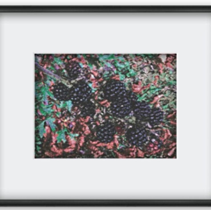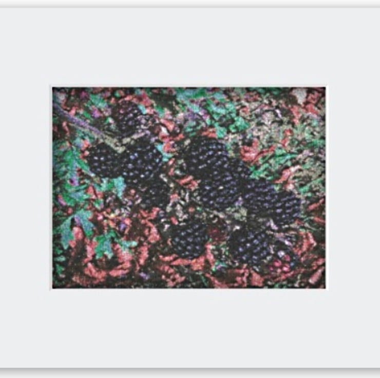 The work is embroidered on a canvas, stretched and mounted in a plain white mount and backed ready for a frame of your choice. Presented in a clear Celophane bag. The embroidery can be kept clean (if unglazed) using a damp cloth.