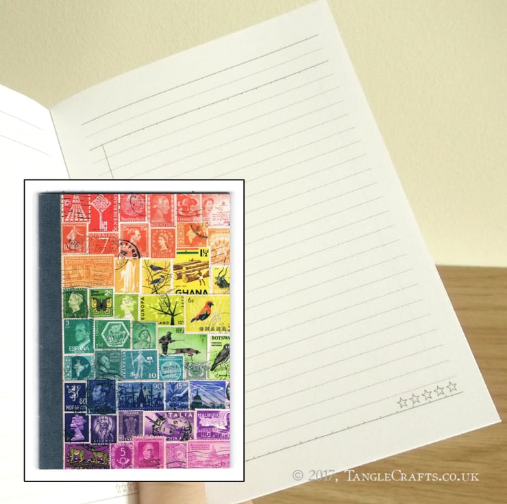 Please see my shop for more printed notebook designs (as well as original postage stamp collages) and money-saving sets. Great stocking filler!