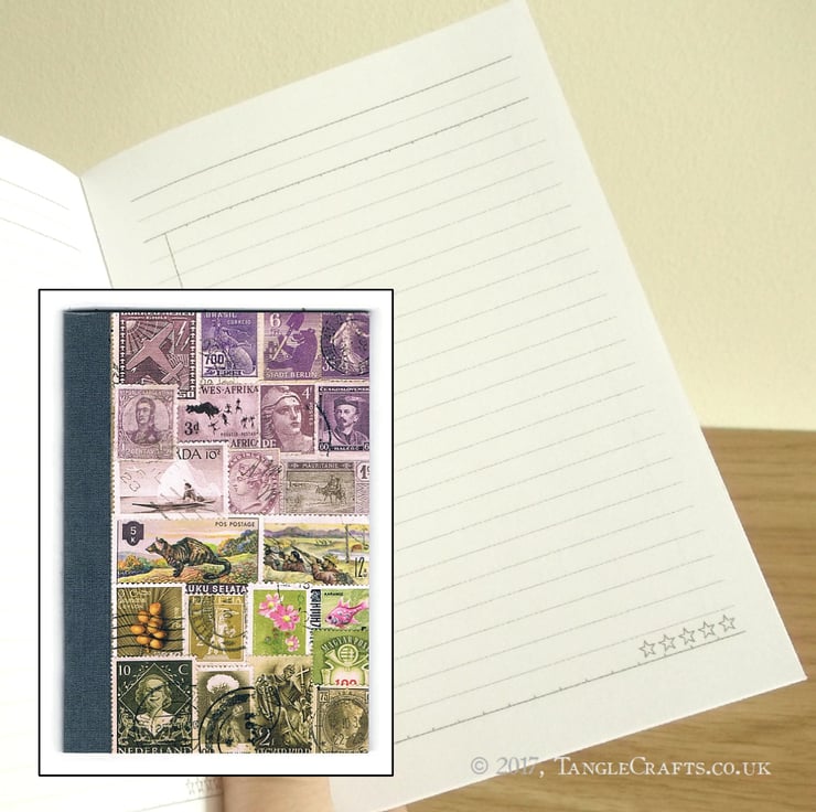 Please see my shop for more printed notebook designs (as well as original postage stamp collages) and money-saving sets. Great stocking filler!