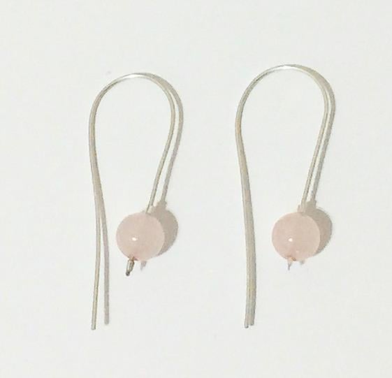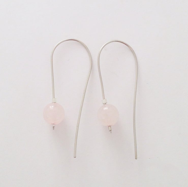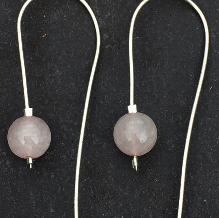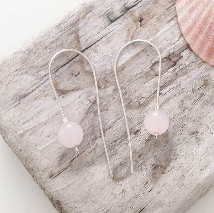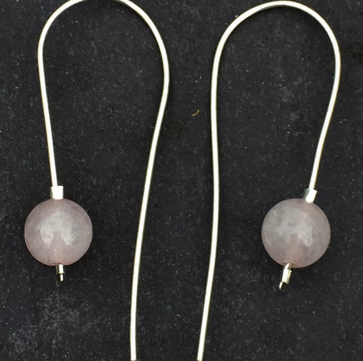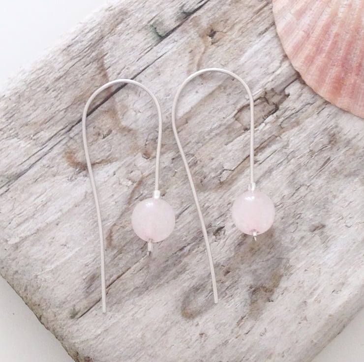 These beautiful earrings are made from 8mm rose quartz beads on hand made sterling silver loops.