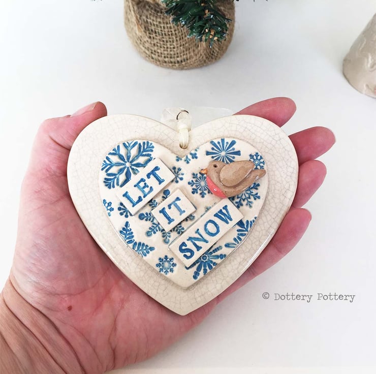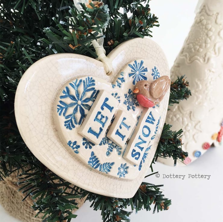 This ceramic heart Christmas decoration is made from white earthenware clay.