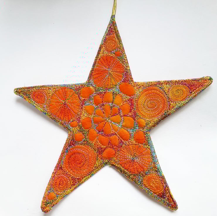 Made from layers of fabric including hand dyed silk and cotton using the free machine embroidery style of sewing