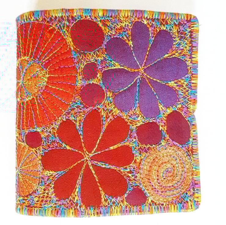 Made from layers of fabric including silk and hand dyed Egyptian cotton using the free machine embroidery style of sewing