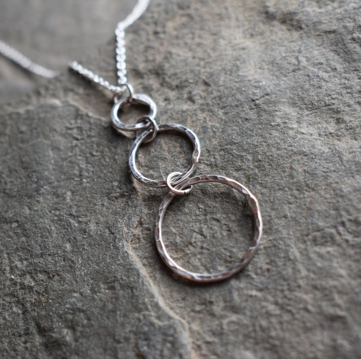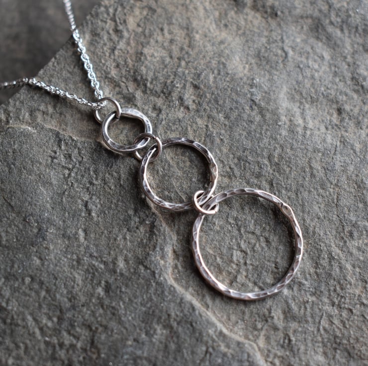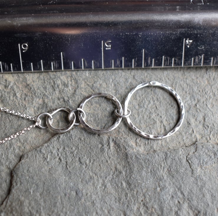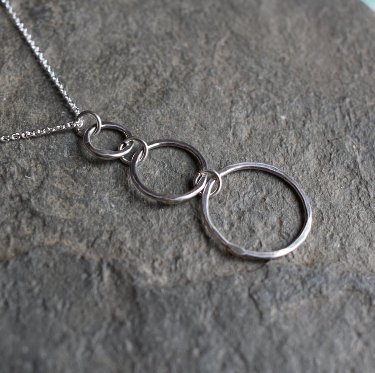 Hammered silver hoop necklace handcrafted in Yorkshire. Each piece is handmade to order and starts life as a simple piece of wire which is shaped, hammered and aged before polishing for 4 hours to give a beautiful textured shine.