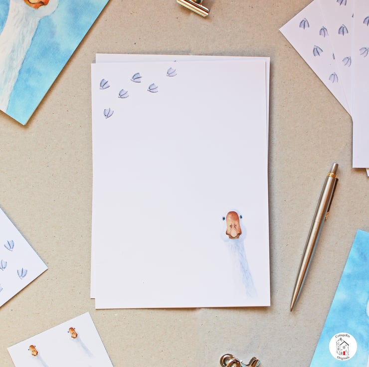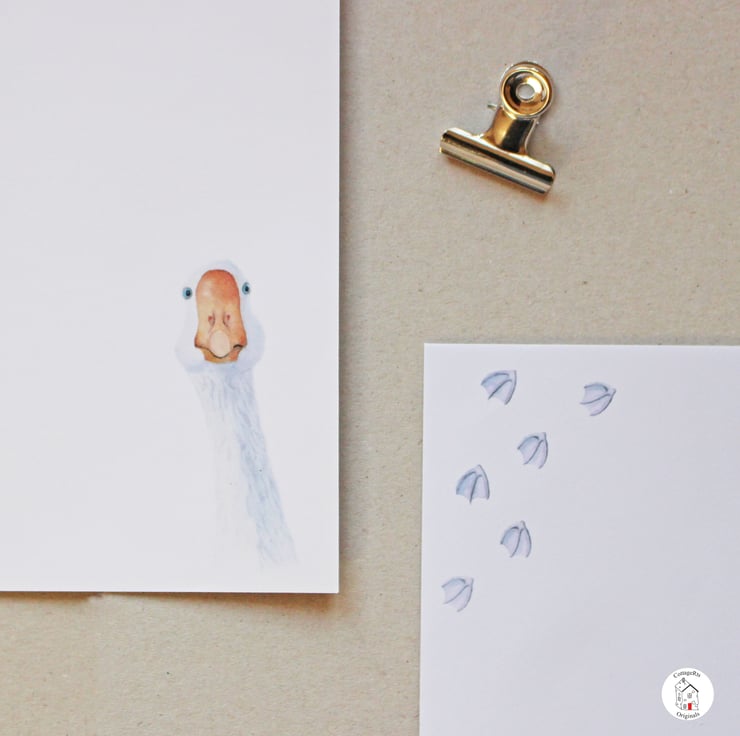 - 6 sheets A5 laid letter writing paper featuring the goose and footprints.