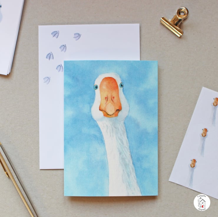 This goose stationery set contains writing paper, envelopes, notecards and stickers all digitally printed with our original hand painted watercolour illustration.